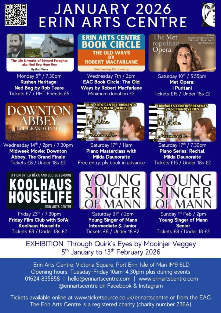 Thank You from the Erin Arts Centre. As a new season of events gets underway, we’d like to take the opportunity to acknowledge and thank our many supporters and benefactors. As a registered charity, your help and generosity allow us to continue our mission to provide the Island community with a diverse and exciting programme [read more…] - Young Singer of Mann 2026