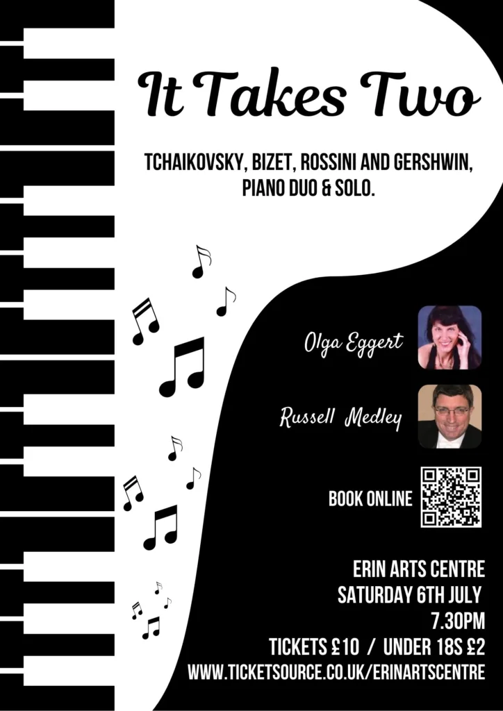 A programme of your favourite beautiful classical music by Tchaikovsky, Bizet, Rossini and Gershwin, some played as a duo and some solo, for your enjoyment and pleasure. Join Olga and Russell for the evening of piano entertainment, a mixture of virtuoso pieces and dreamy romantic melodies. Hope to see you there!