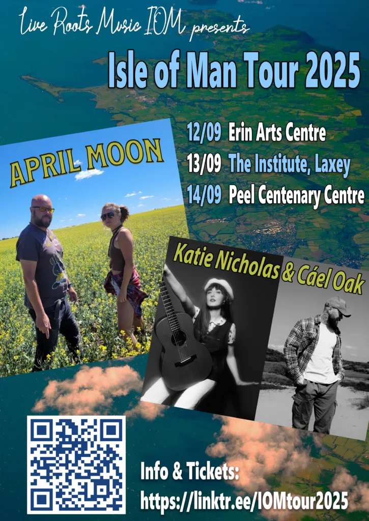 Regrettably, due to serious illness. Katie Nicholas has had to postpone her IOM shows. We wish Katie a speedy recovery & hope to see her on the Island next year alongside Cael Oak. We apologise for any inconvenience caused; full refunds will be issued for any tickets purchased.