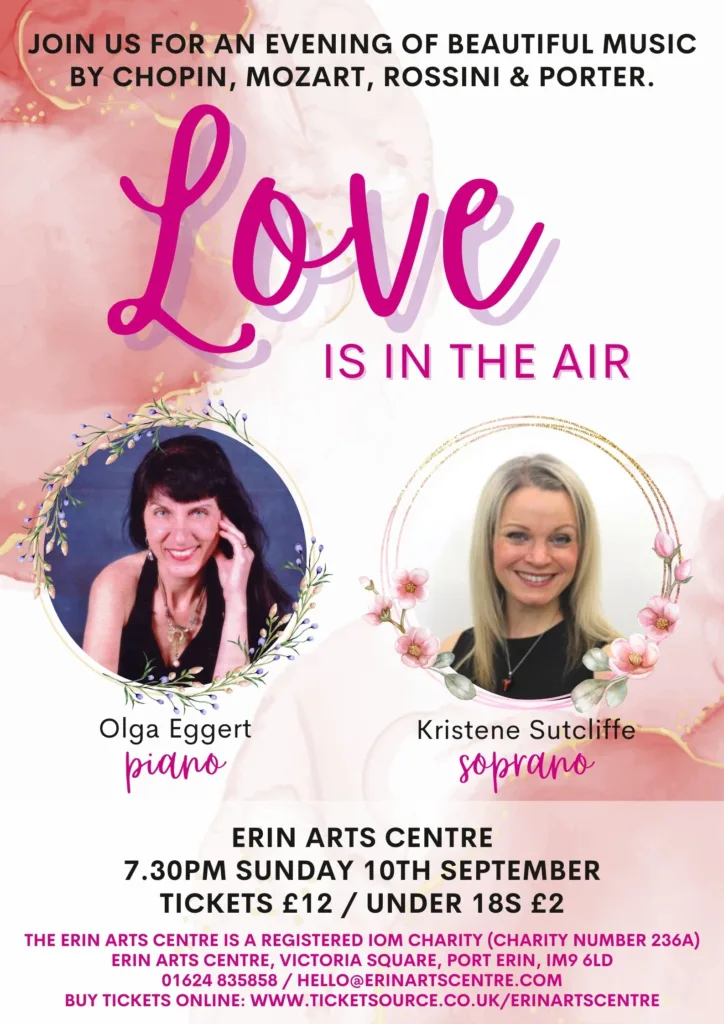 Kristene Sutcliffe (soprano) Olga Eggert (piano) take to the EAC stage for an evening of beautiful duets by Chopin, Mozart, Rossini and Porter.