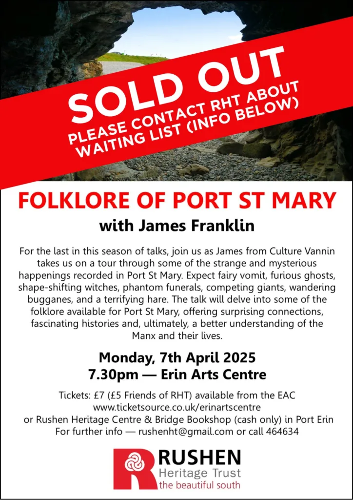 Please note – tickets for this event are now sold out. Please contact John Quirk from Rushen Heritage Trust on [email protected] or call 464634 to be added to the waiting list.