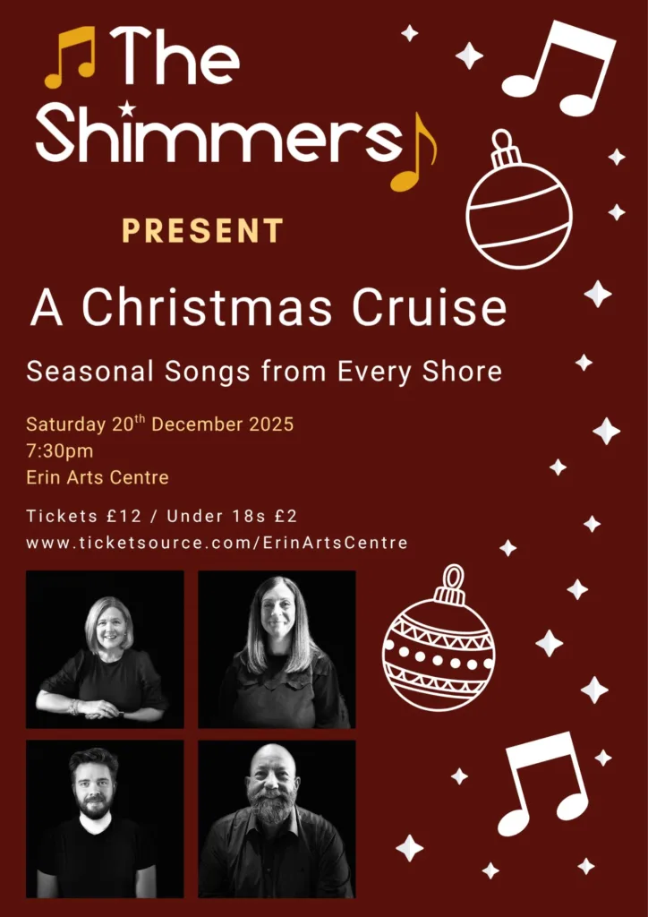 Join The Shimmers to cruise into the Christmas season with seasonal tunes from every shore around the world.