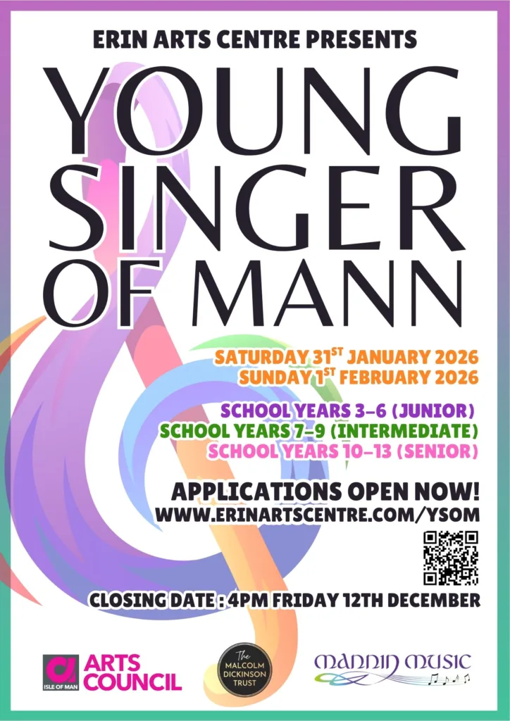 Applications for next year’s Young Singer of Mann Competition at Erin Arts Centre are now open, with a closing date of 4pm on Friday 12th December 2025.