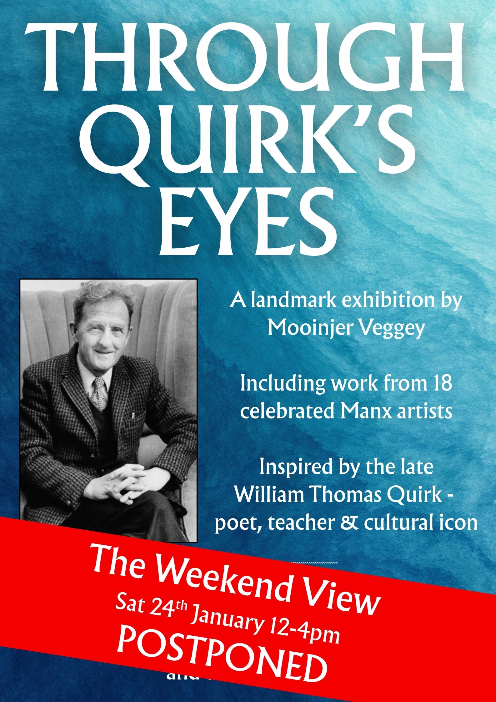 UPDATE: Unfortunately Mooinjer Veggey have let us know that this event has been postponed so the gallery will not be open on Saturday 24th Jan. The Weekend View Saturday 24th January 12-4pm Erin Arts Centre - free entry Drop into the gallery at Erin Arts Centre on Saturday 24th to see our current exhibition Through Quirk's Eyes, curated by the Manx language charity Mooinjey Veggey. Each piece of work is from a Manx artist and [read more…]