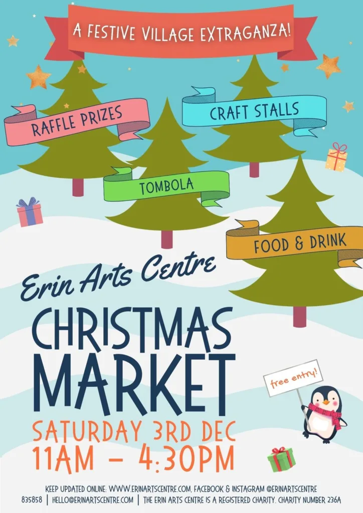 The Erin Arts Centre will be hosting our Christmas Market on Saturday 3rd December, with doors open from 11am to 4.30pm.