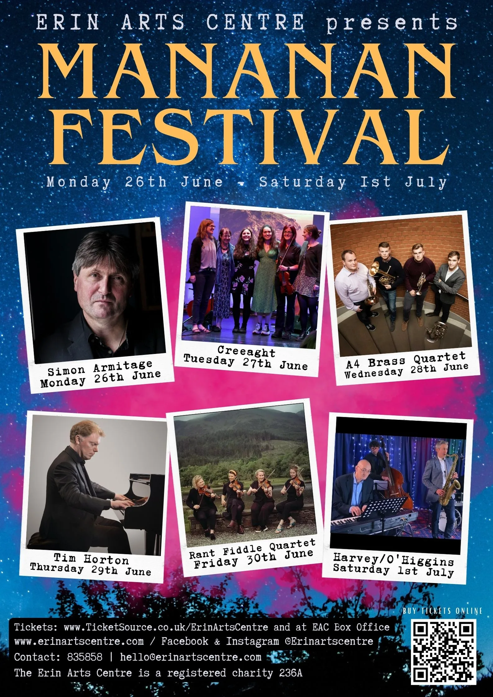 We have a fantastic lineup for this year’s Mananan Festival and tickets are now on sale to Friends of EAC members using the priority booking code. If you are a member and have not received the code, please get in touch with us at [email protected] or on 01624 835858.