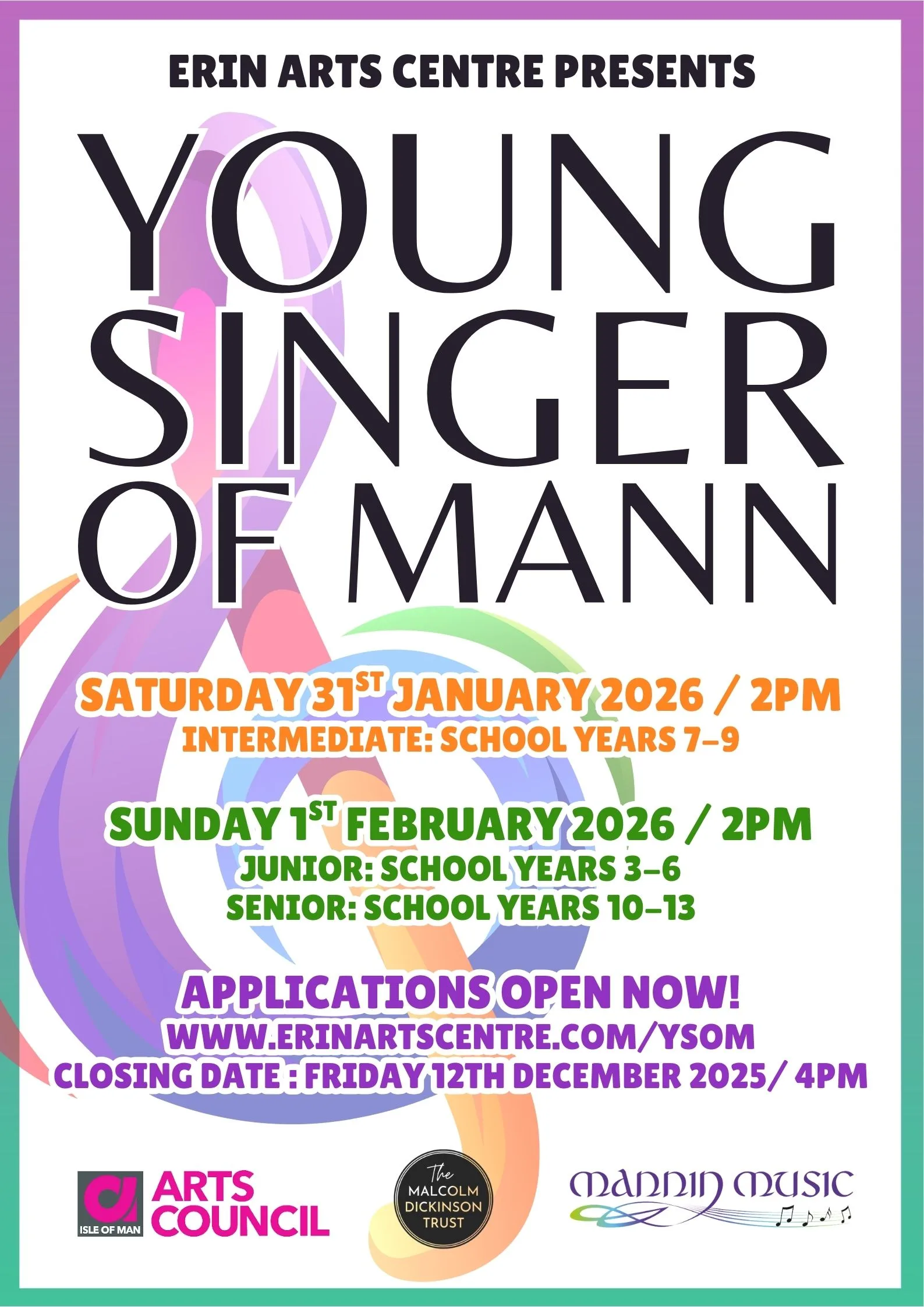 Applications for next year’s Young Singer of Mann Competition at Erin Arts Centre are now open, with a closing date of 4pm on Friday 12th December 2025.